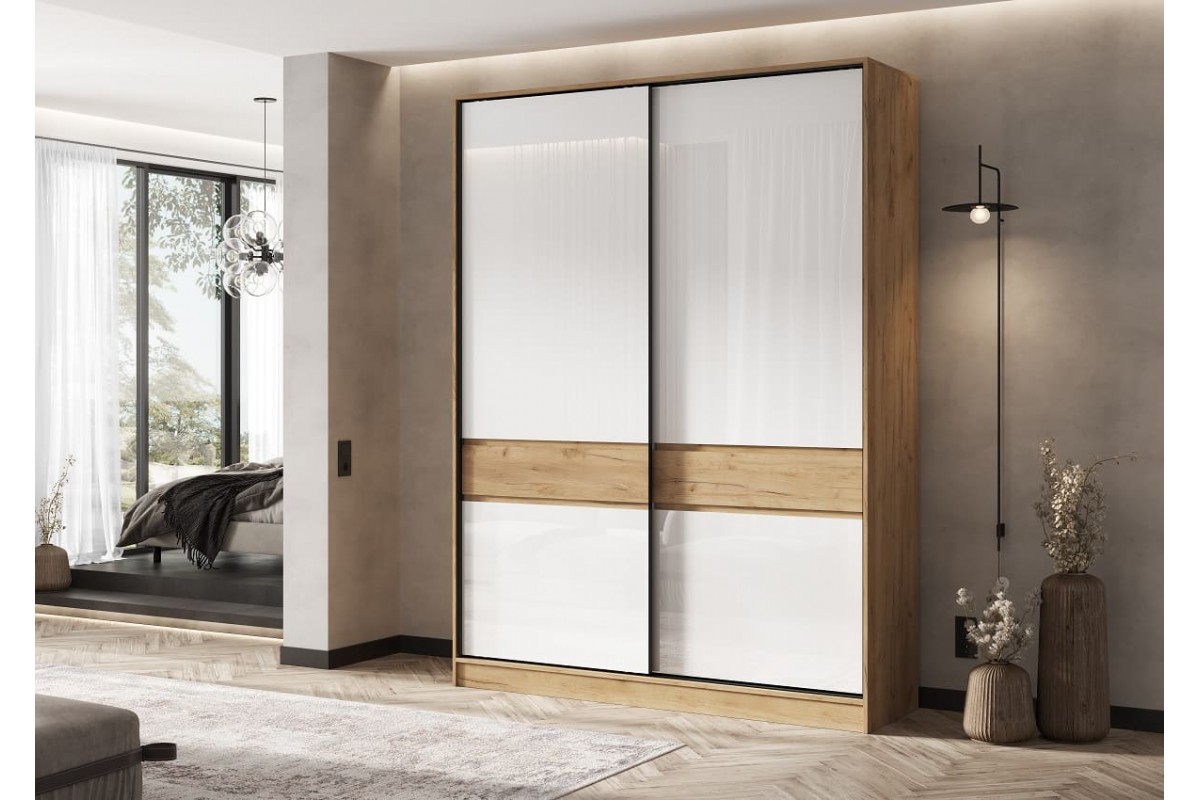 Шкаф-купе «Роджина 1800» высота 240 см (дуб крафт золотой - белый глянец)