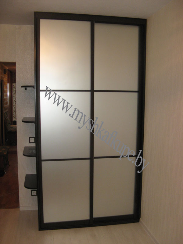 код 89004Система раздвижных дверей Модус. Профиль: венге глянец. Фасад: зеркало сатинированное серебро.