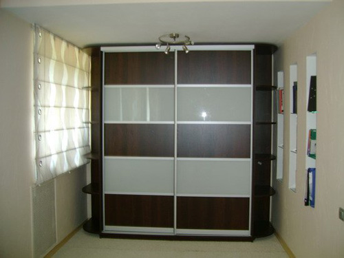 Шкаф-купе с боковыми полками и матовыми вставками на створках
