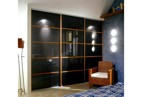 Шкаф-купе с древоподобным профилем и лакобелем черного цвета
