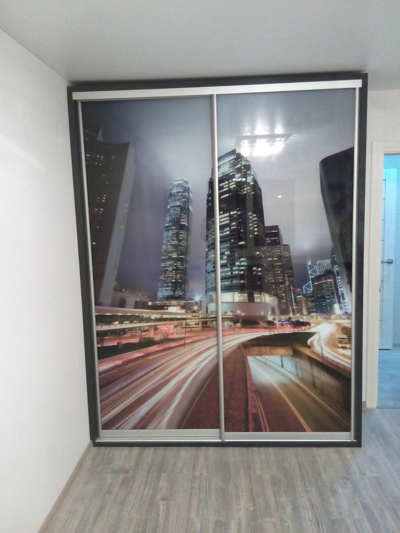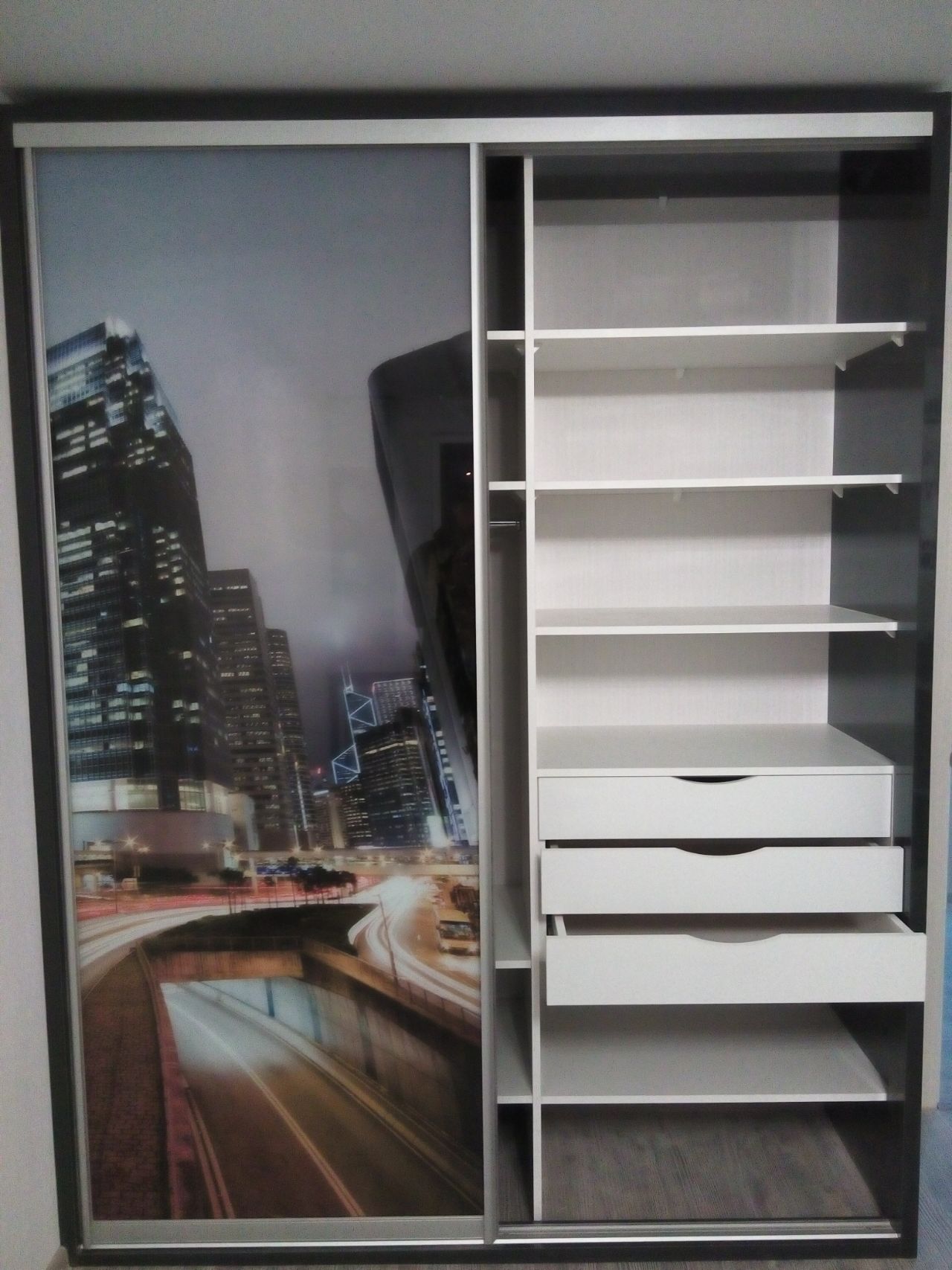 Корпусный шкаф-купе без зеркал, двери с алюминиевым профилем. Ширина 112 см.
