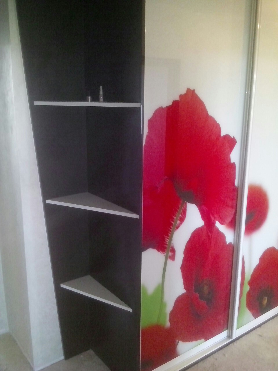 Комбинированные двери, полки справа. Ширина 152 см.