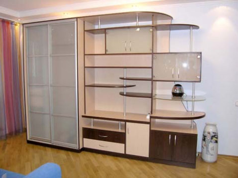 Шкаф-купе с горкой – это оптимальное решение в интерьере небольшой квартиры. Конструкция представляет собой стандартный шкаф-купе с раздвижными дверями и небольшая горка с множеством открытых полок.