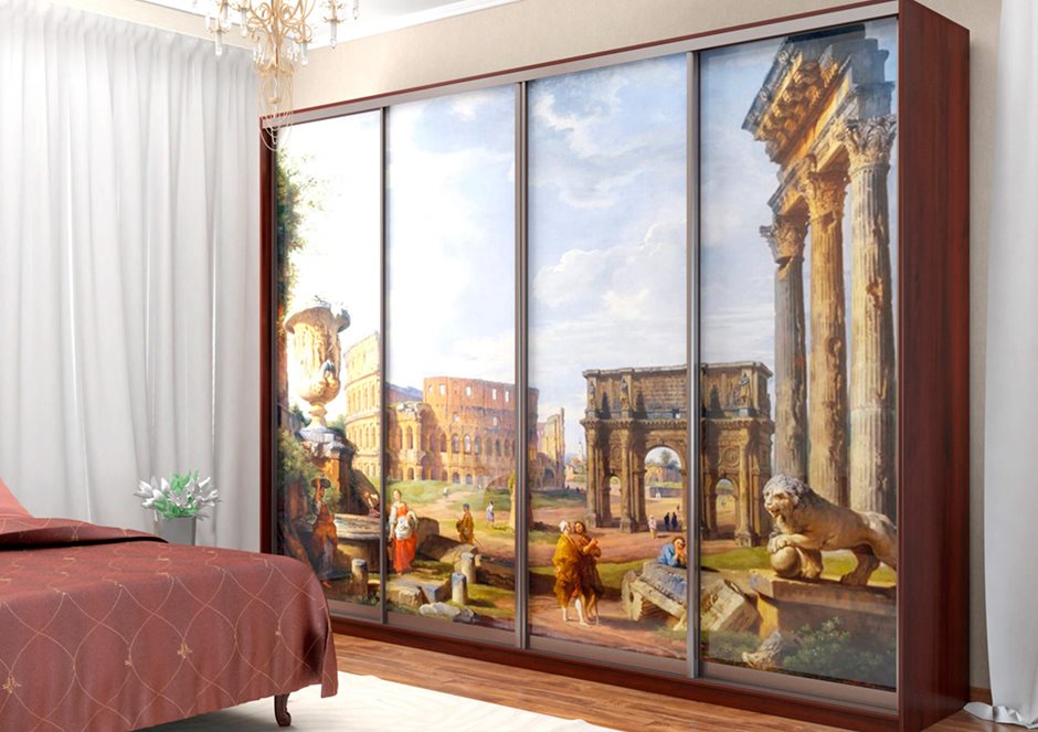 код 89408Широкий шкаф на четыре створки с рисунком по римским мотивам.