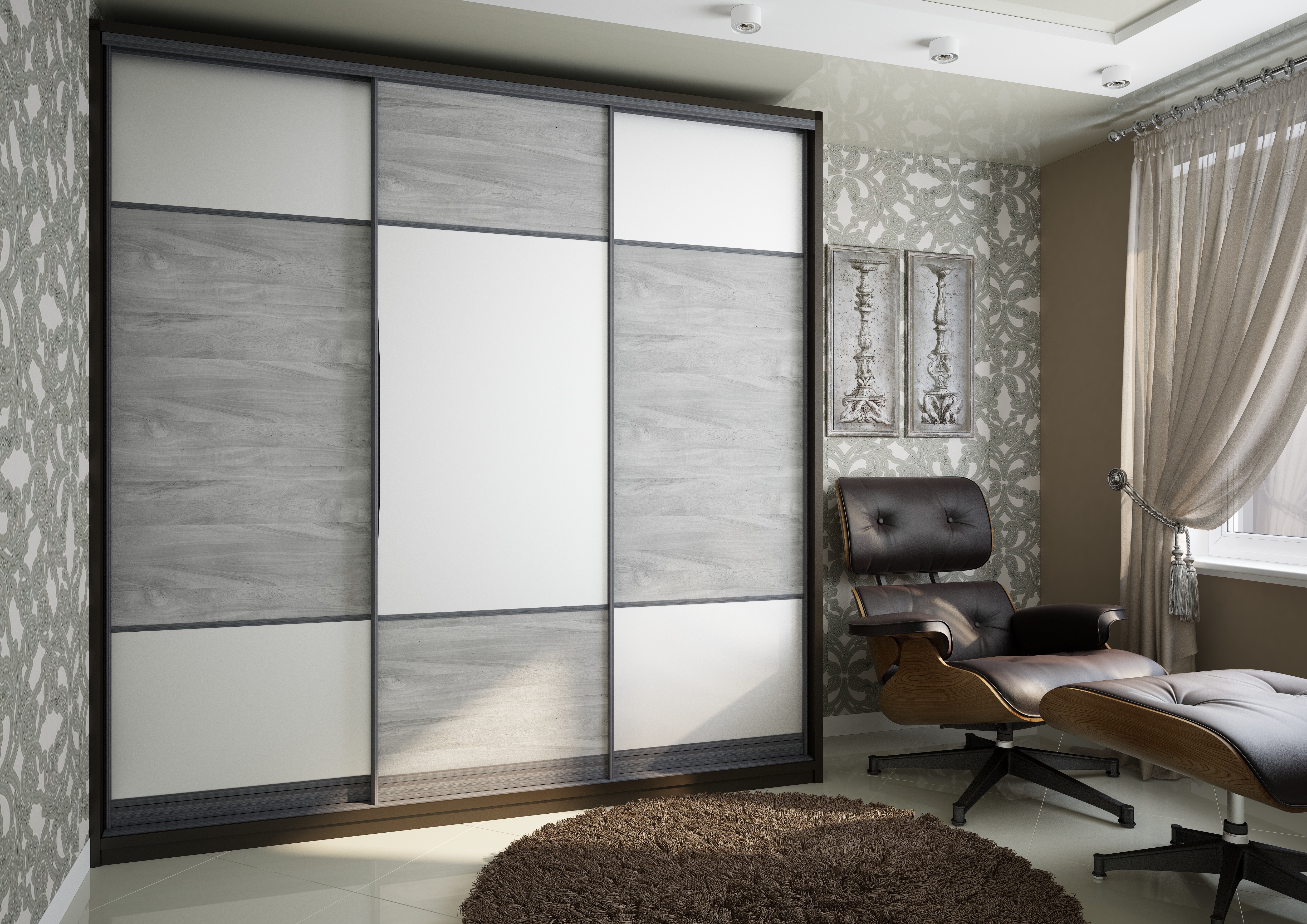 Шкаф-купе линейный с фасадом из стекла лакобель