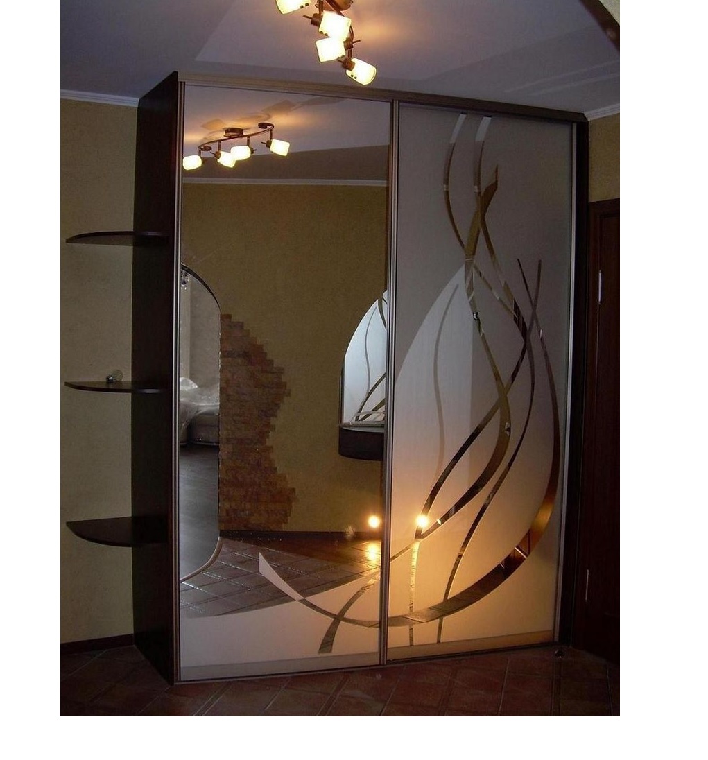 Шкаф-купе с пескоструйным узором. Горка с зеркалом.