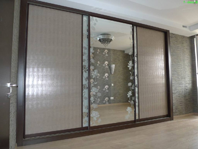 Три раздвижные створки линейного шкафа-купе отличаются интересным и неповторимым дизайном, который задаст интерьеру помещения определенный тон, а также будет долгие годы радовать приятным внешним видом. Светлые фасады отлично дополняют по цветовой гамме темный корпус. Широкое зеркало декорировано изящным пескоструйным рисунком на цветочную тематику, привнося разнообразие в интерьер.