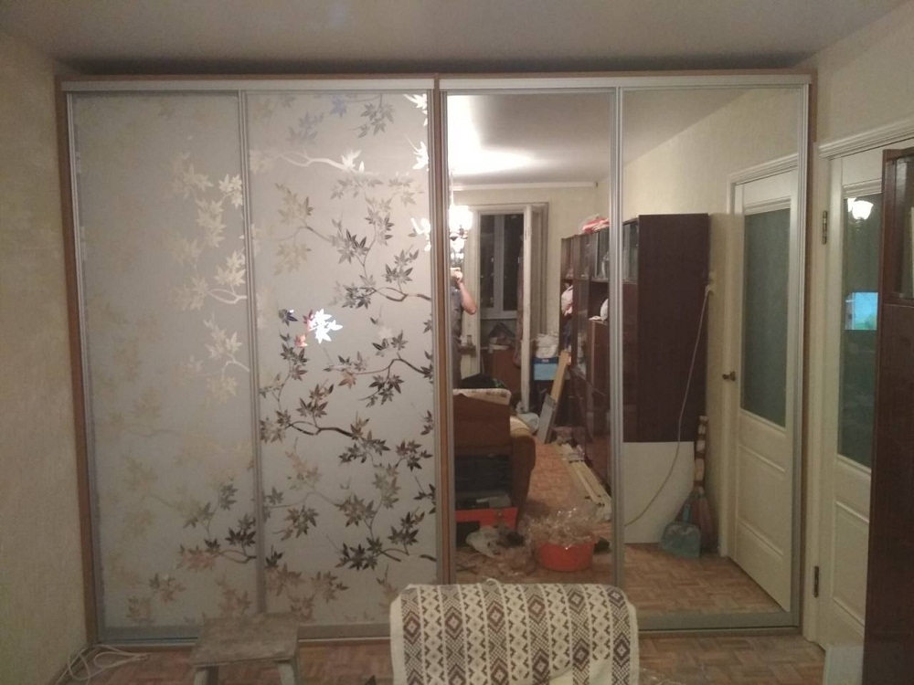 Шкаф-купе с зеркальным и пескоструйным фасадом