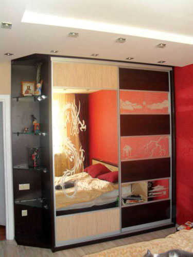 Комбинированный дизайн этой модели подойдет практически к любому современному интерьеру, так ка имеет очень интересное оформление и сочетание различных материалов. Дизайнеры использовали в одном шкафу сразу несколько художественных средств: вставки из темного и светлого материалом с приятной древесной текстурой, а также зеркальные элементы с пескоструйным рисунком с японскими мотивами, которые с легкостью создадут очень приятный и умиротворенный интерьер.