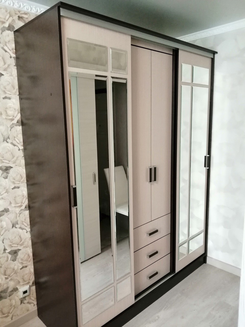 Двухметровый шкаф-купе с зеркалом во весь рост на центральной створке.