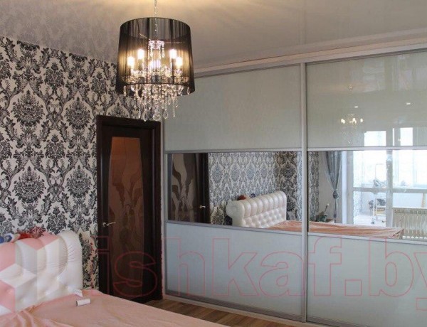 Трехстворчатый зеркальный фасад украшен легким узором из матового стекла в бронзовой окантовке.