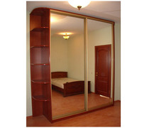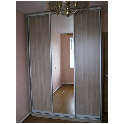 Боковые створки шкафа из ЛДСП, центральная створка с зеркальной вставкой во весь рост.