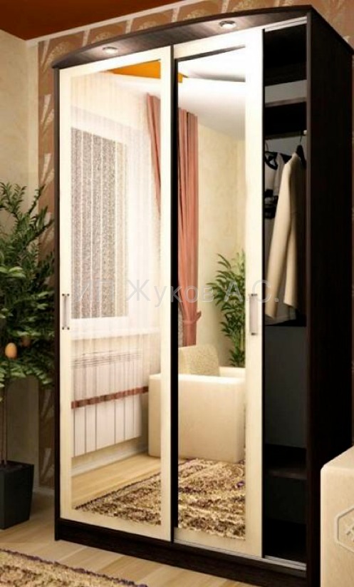 Шкаф-купе в светлых тонах и зеркальными створками подойдет для спальни и прихожей.