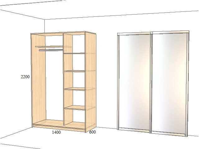 Размер: 1450x650x2200 мм. Материал: ЛДСП/Зеркало.