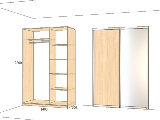 Размер: 1400x600x2300 мм. Материал: ЛДСП/Зеркало.