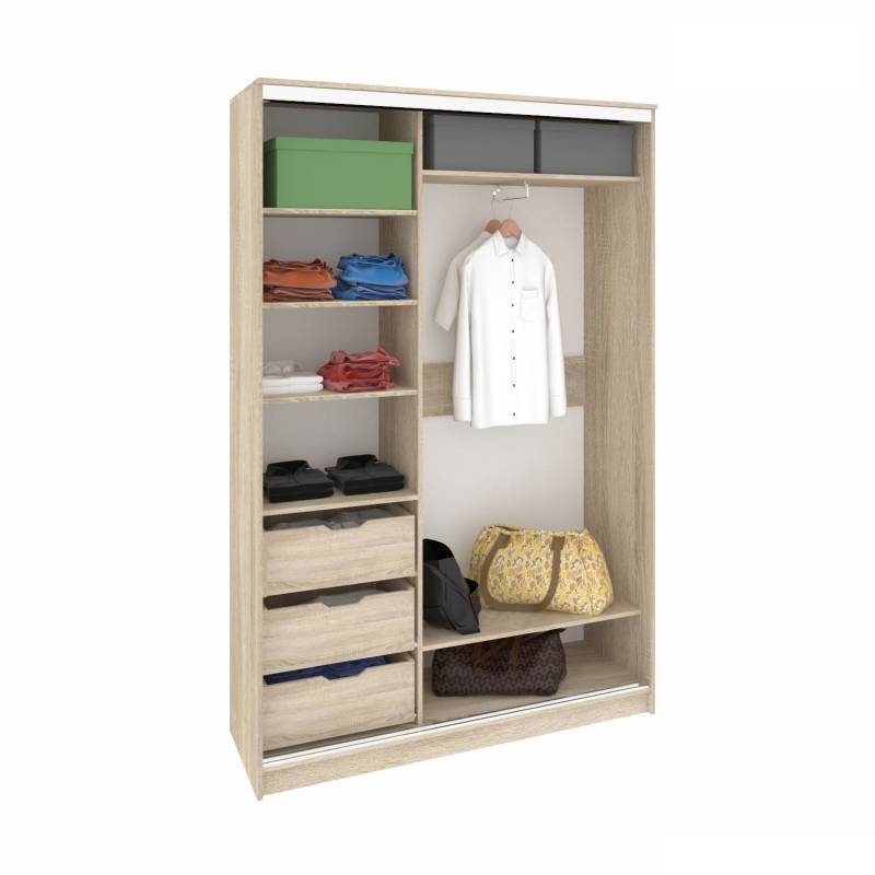 Комбинация из закрытой зоны шкафа-купе, полок, места для сидения и открытых вешалок.