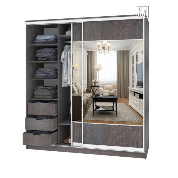 Шкаф-купе «ШК 1600 Комби-1» (шимо светлый-шимо темный) профиль алюминий