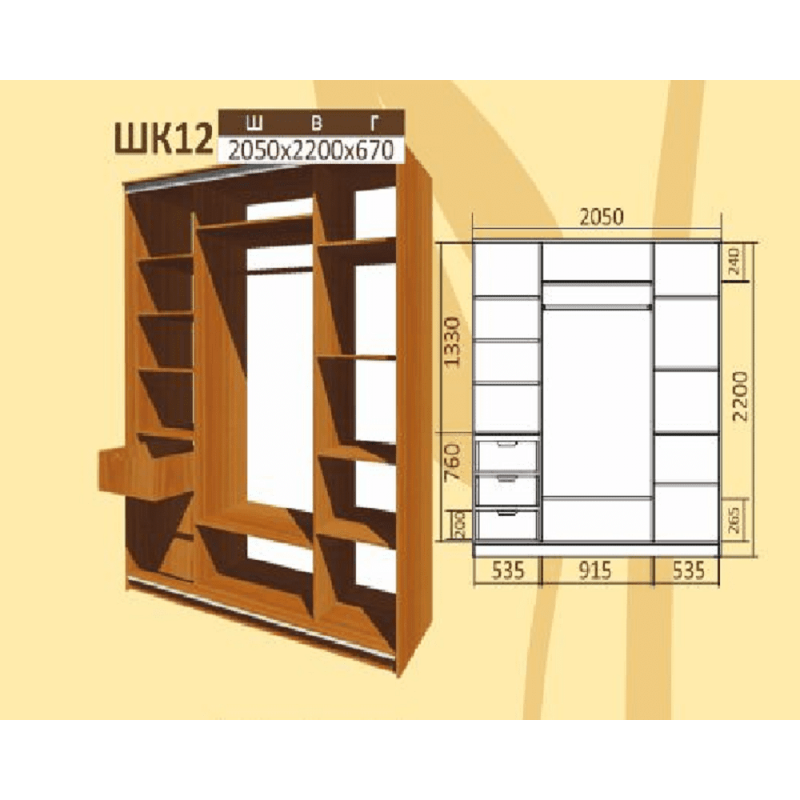 Шкаф-купе «Сенатор ШК-12» 2,05 м геометрия (Венге светлый)