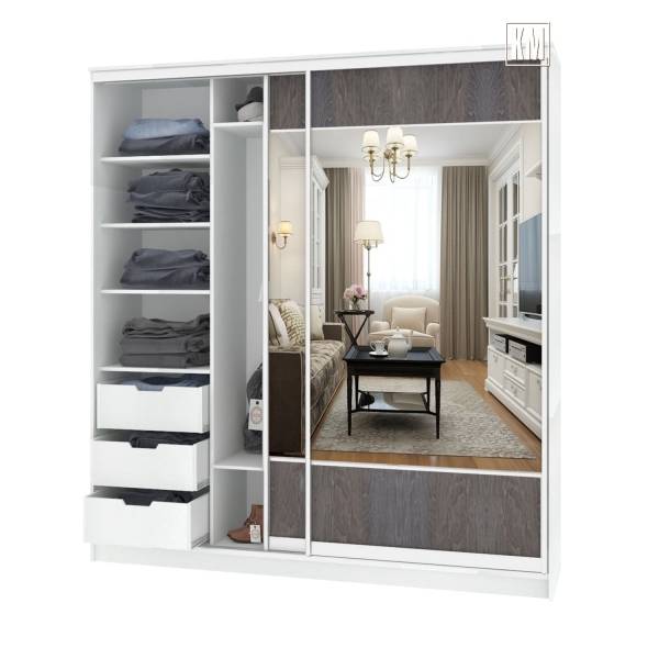Шкаф-купе «ШК 1800 Комби-1» (шимо темный) профиль алюминий