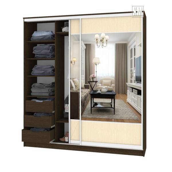 Шкаф-купе «ШК 2400» одно зеркало (шимо светлый-темный) профиль алюминий