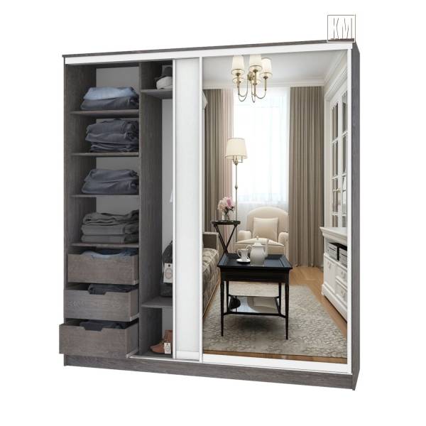 Универсальный шкаф-купе с полками слева. Ширина 152 см.