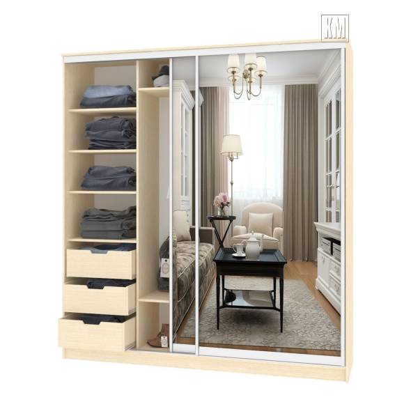 Фабричный шкаф-купе с шухлядами. Габариты: 1200x2200x600 мм.