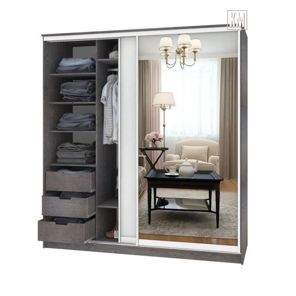 Шкаф-купе «ШК 1600» зеркало-ЛДСП (шимо светлый) профиль алюминий