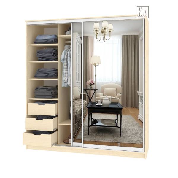 Шкаф-купе для жилой комнаты, прихожей или спальни. Зеркало с противоударной пленкой.