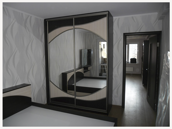 Современный и вместительный шкаф для спальной комнаты. Фасады с декором.