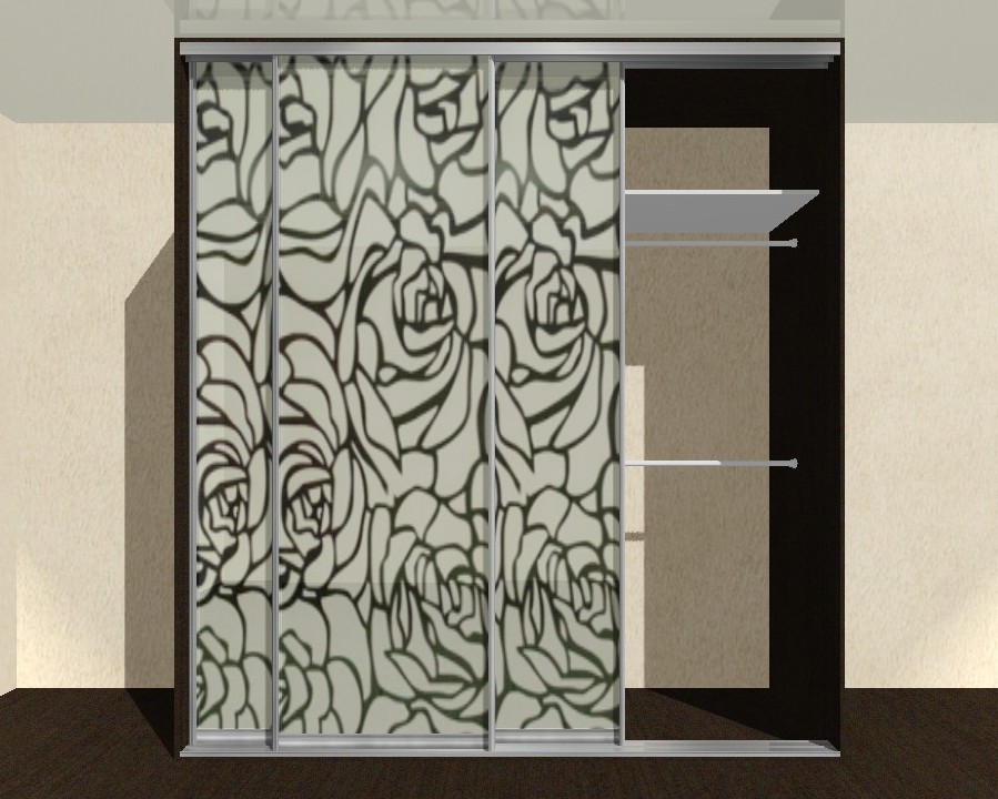 код 84316Габариты (вшг): 2500х2300х600 мм. Три створки с пескоструйным рисунком.