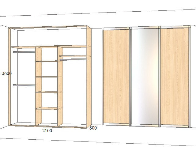 Размер: 2100x600x2300 мм. Материал: ЛДСП/Зеркало.