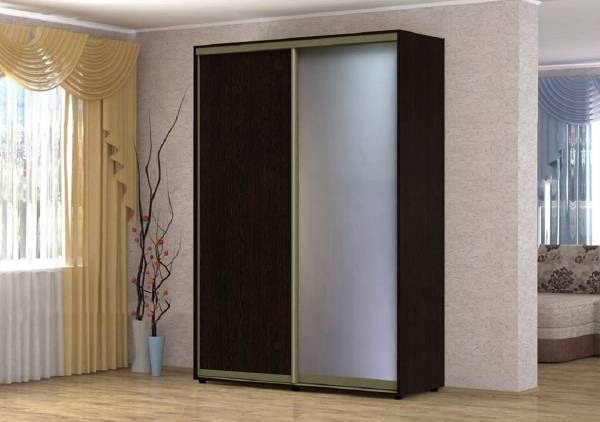 Шкаф-купе «ШК 1200» зеркало-ЛДСП (дуб венге) профиль шампань