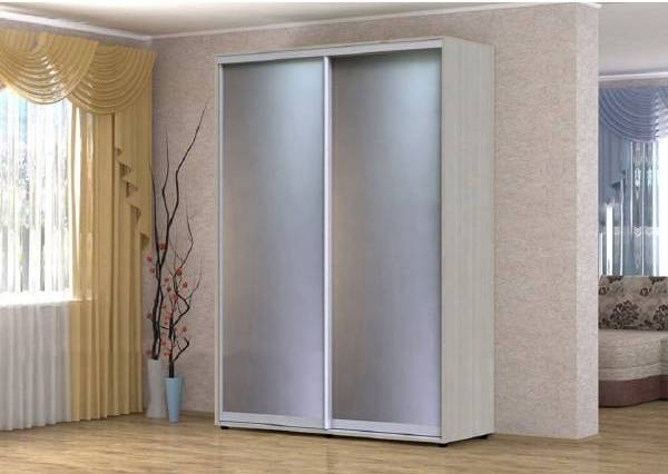 Корпусный однотонный шкаф-купе с одним зеркалом. Одно отделение внутри. Ширина 112 см.