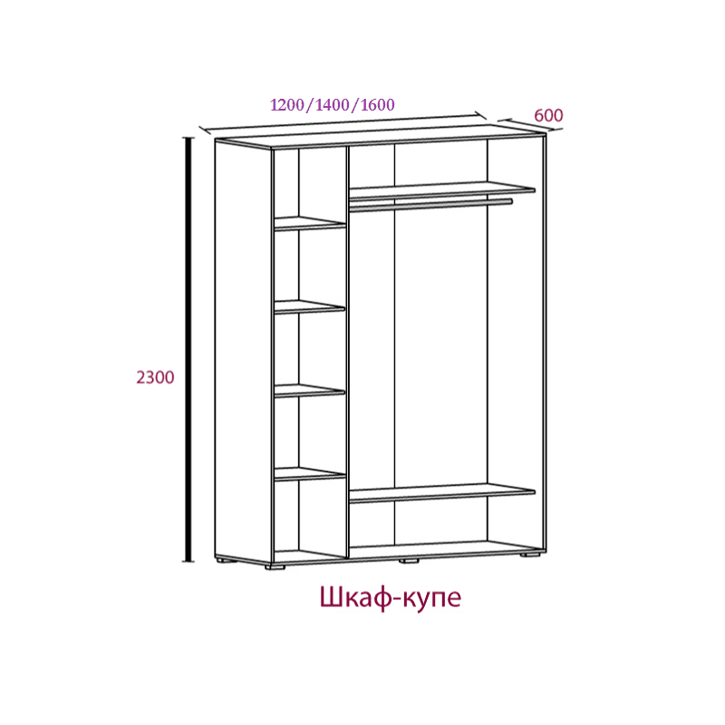 Размер (ДхШхВ): 1200х600х2300 мм. Материал: ЛДСП.