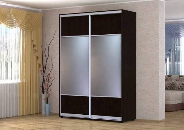 Шкаф-купе «ШК 1400 Комби-2» (дуб венге) профиль алюминий