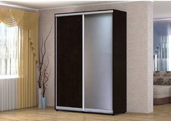 Шкаф-купе «ШК 1400» зеркало-ЛДСП (дуб венге) профиль алюминий