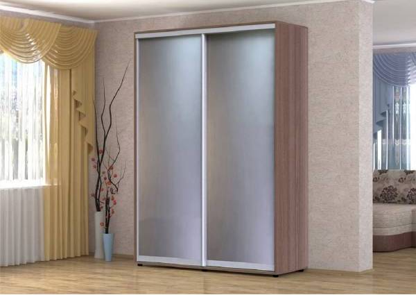 Корпусный шкаф-купе с одним зеркалом, двери с алюминиевым профилем. Ширина 112 см.