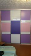 Фиолетовый трехдверный шкаф-купе с зеркалом
