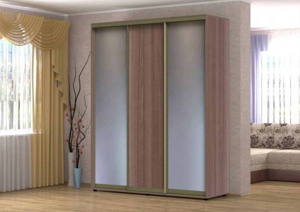 Трехдверный шкаф-купе с комбинированным наполнением створок.