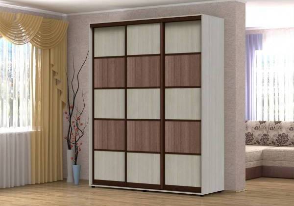 Шкаф-купе трехдверный из ДСП со вставкой лакомат