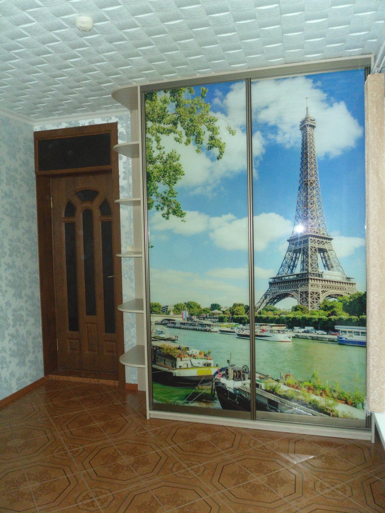 Шкаф-купе с УФ-печатью оптимально подойдет для спальной комнаты. Парижский пейзаж, напечатанный профессиональными УФ-чернилами, придаст комнате легкую и непринужденную атмосферу. Современная система раздвижения позволяет с легкостью открывать створки шкафа. Данная модель имеет открытые боковые полки. Удобное наполнение позволит заполнить шкаф одеждой, обувью и другими вещами.