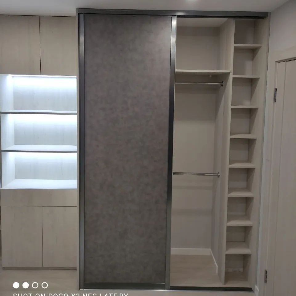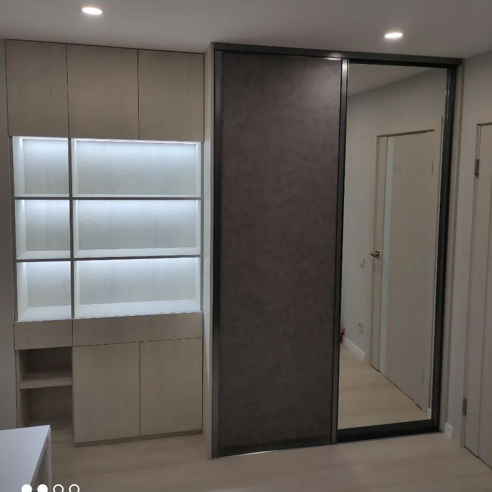Шкаф-купе со стеллажом для хранения и подсветкой