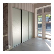 Трехстворчатый шкаф-купе со стеклом лакобель и горизонтальной вставкой