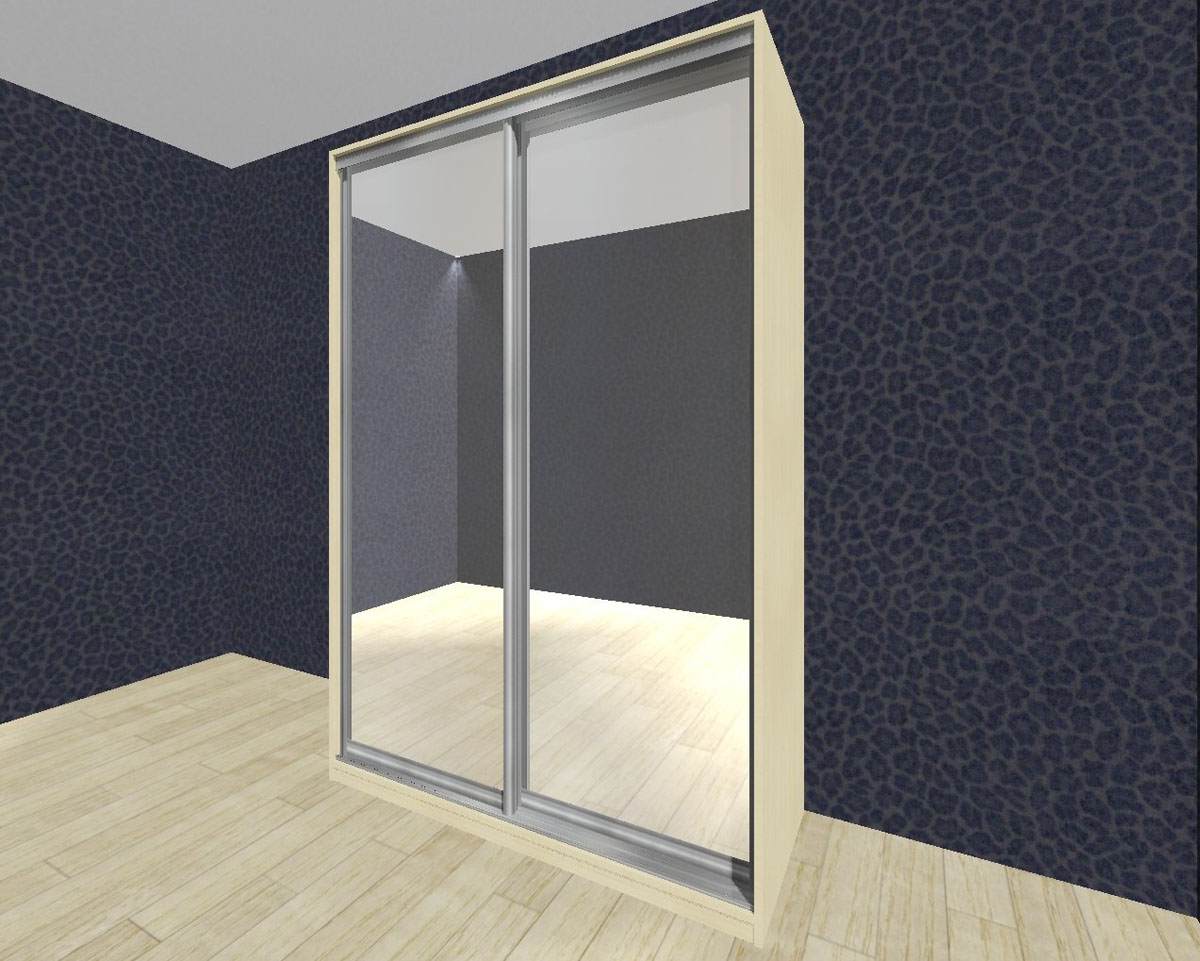 Шкаф-купе шириной 1,5 метров в светлой отделке из ЛДСП. Зеркала на фасаде.