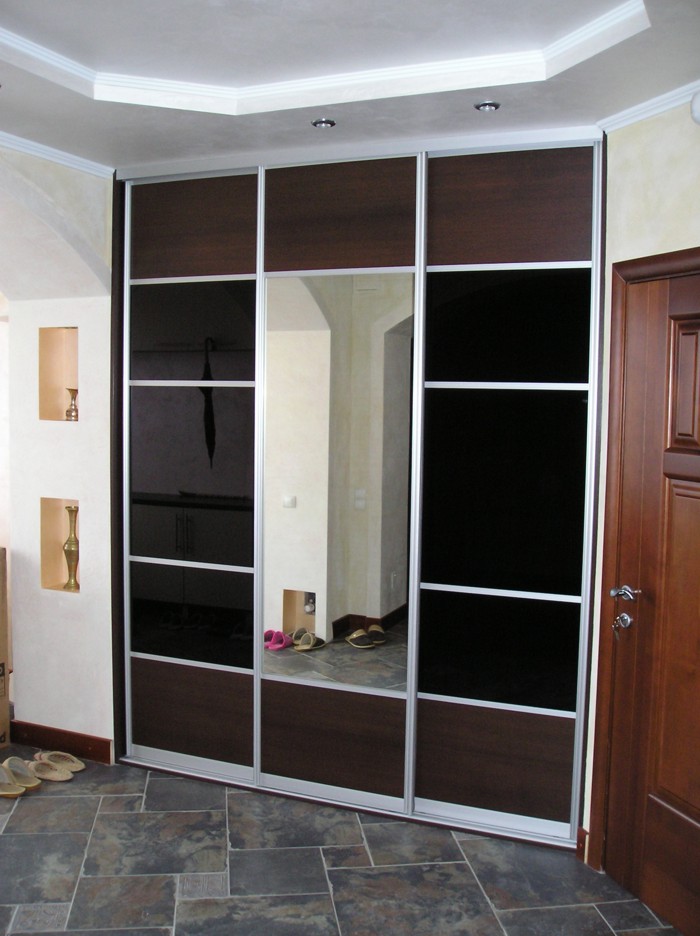 Шкаф-купе трехстворчатый в черно-коричневом цвете с зеркалом