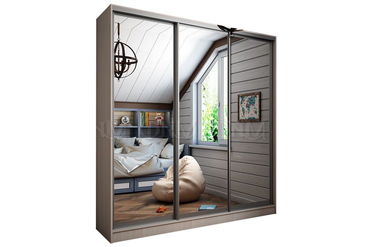 Шкаф-купе «ШК 2400» три зеркала (шимо темный) профиль алюминий
