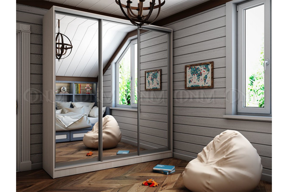 Шкаф-купе «ЭКО» 1,5 м с зеркалом (дуб молочный - дуб молочный)