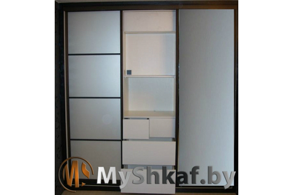 Большой шкаф-купе с платяным отделением и полками. В комплекте две выдвижные шухляды.