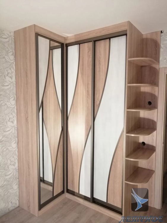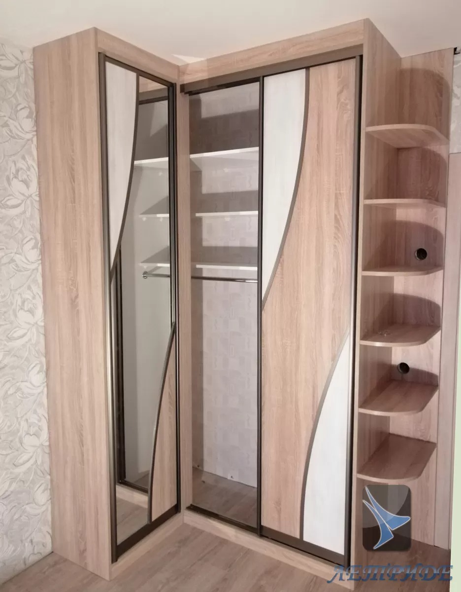 Шкаф-купе угловой с боковыми полками прекрасно подходит для дополнения интерьера любой комнаты по параметрам.