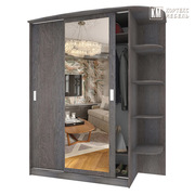 Темный шкаф-купе с двумя зеркалами и полками сбоку. Ширина 185 см.